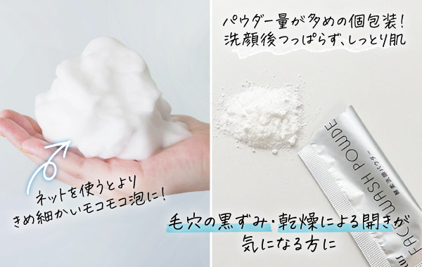 毎日使える低刺激処方の洗顔パウダーは、うれしい個包装タイプです。
